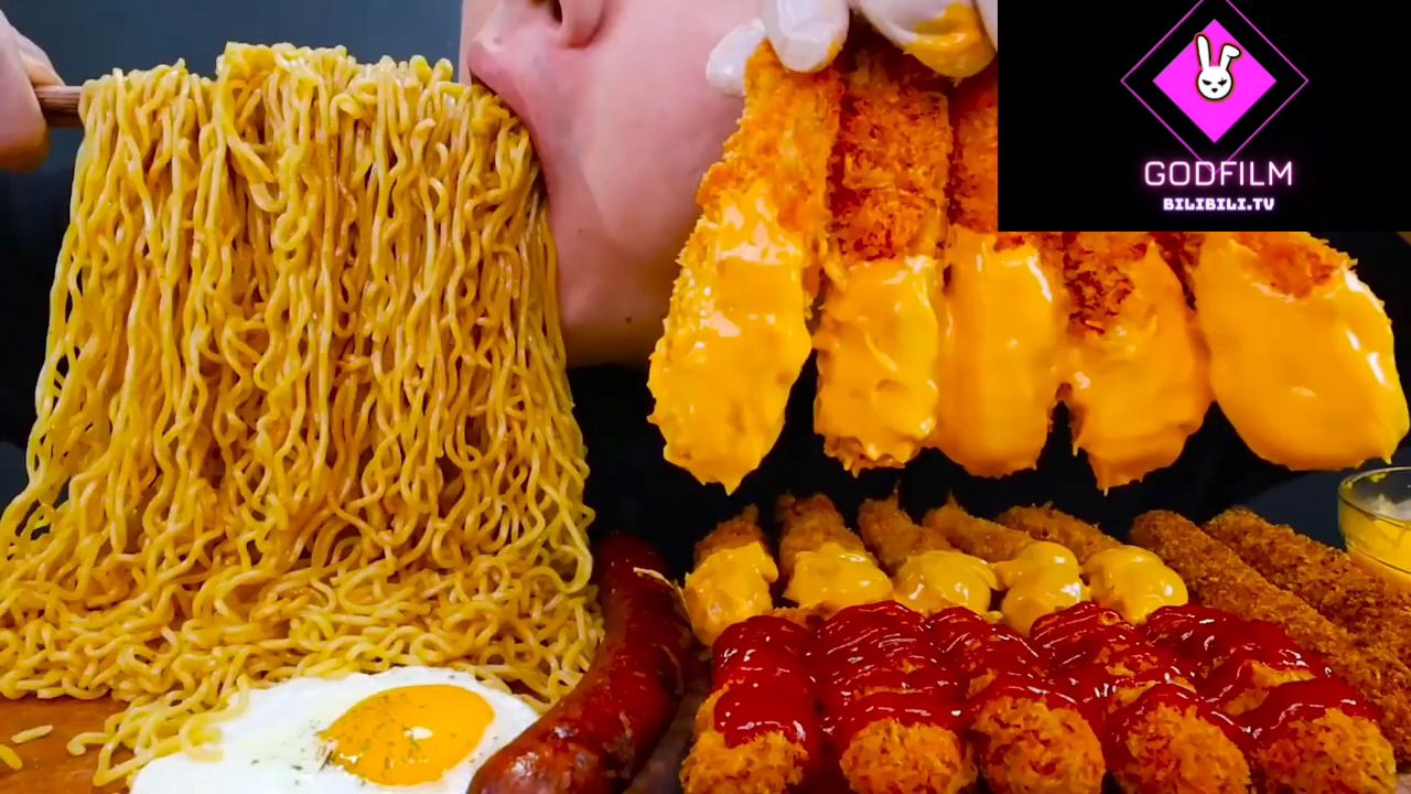Mukbang mì, đùi gà sốt cay và phomai que #anngon