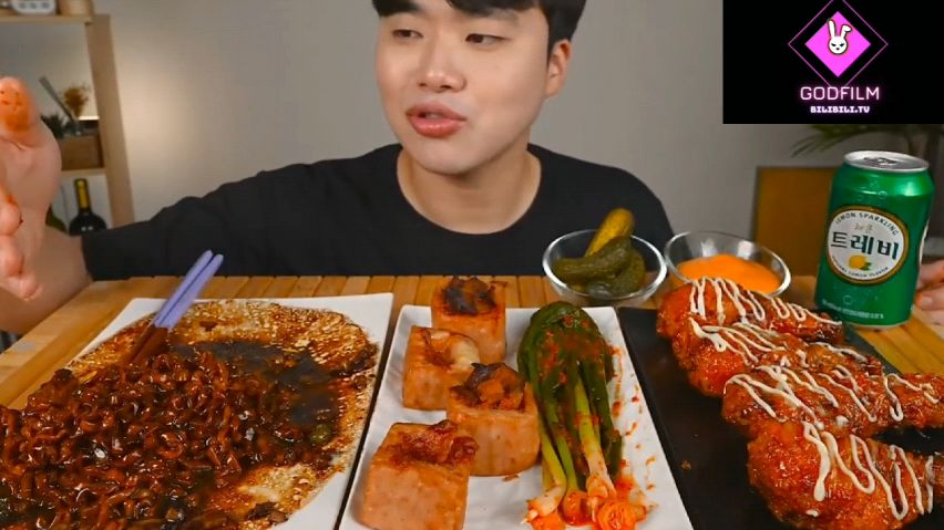 Mukbang mì, đùi gà sốt cay và phomai que #anngon