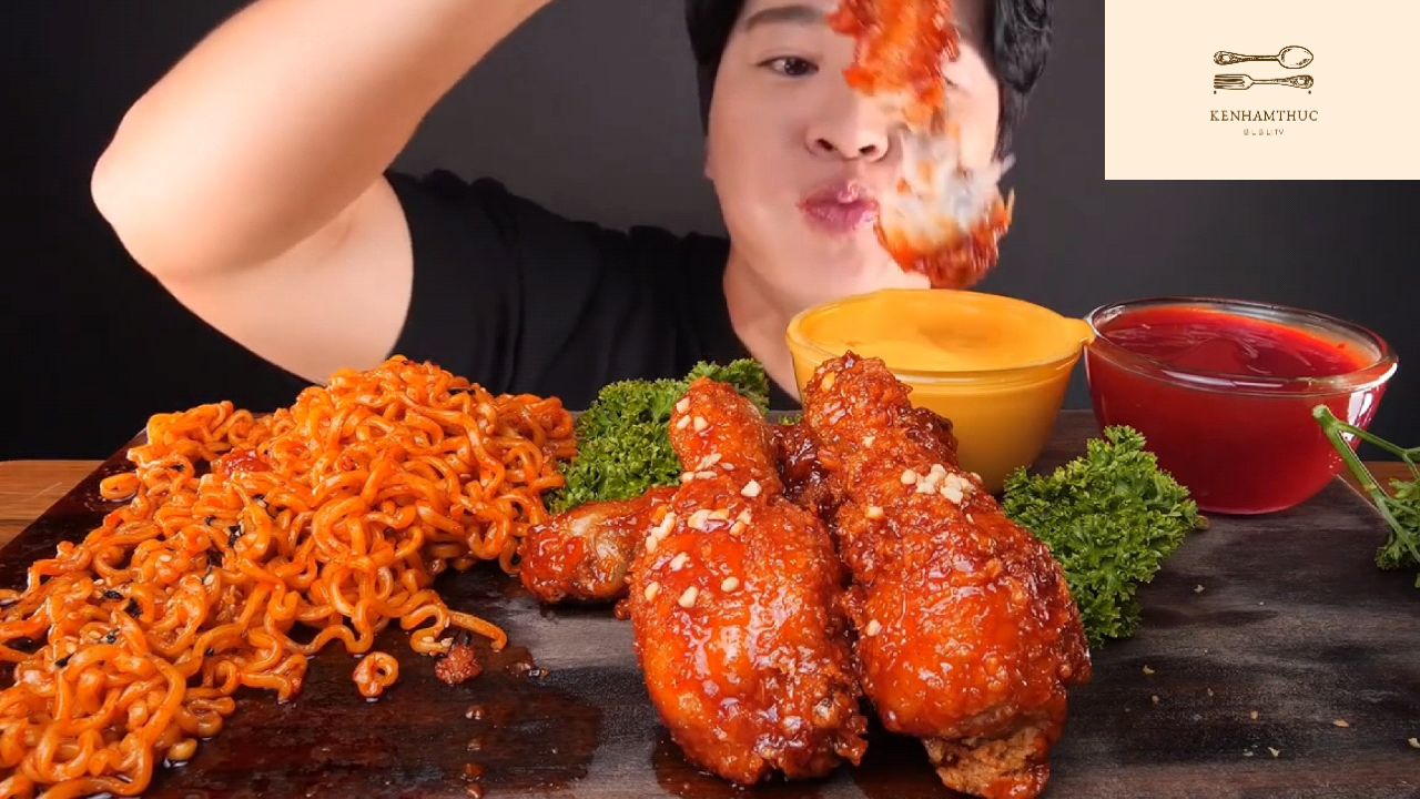 Mukbang: ăn mì tôm xúc xích và thịt nướng#anngon