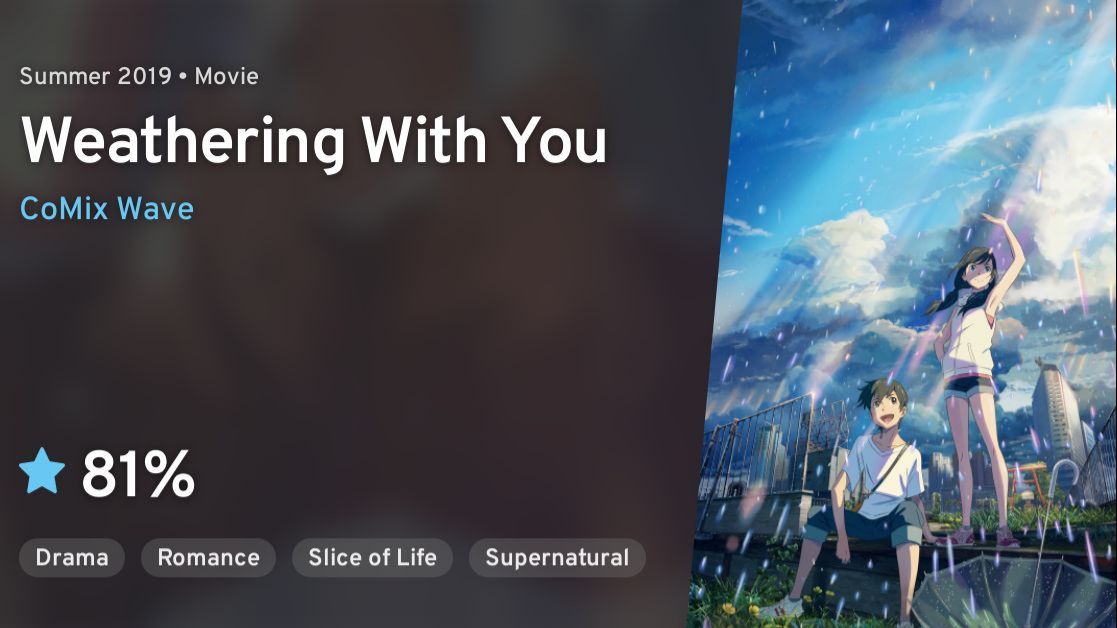 Tenki no Ko bercerita tentang petualangan seorang anak laki-laki bernama Hodaka Morishima dan Hina Amano, seorang “Gadis Matahari” dengan kekuatan misterius yang bisa merubah cuaca dengan kekuatan “doa”nya. Hujan yang terus turun membasahi Tokyo setiap hari membuat banyak orang berharap cuaca cerah. Saat itulah Hina dan Amano menawarkan jasa “Layanan Matahari” yang membuat cuaca cerah. Namun, ada “harga” yang harus dibayar agar semua itu bisa tercapai. Petualangan penuh emosional mereka berdua pun berlangsung.
