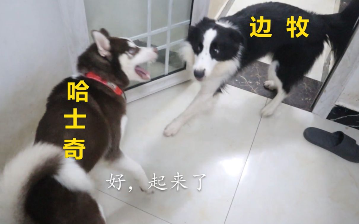 在二哈面前磨刀,在边牧面前磨刀,胆量差距一目了然