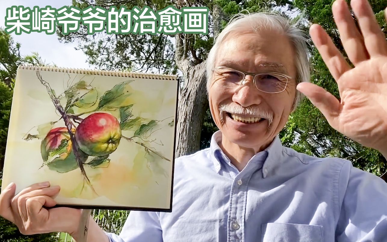 柴崎爷爷的治愈画系列-《带枝叶的苹果》