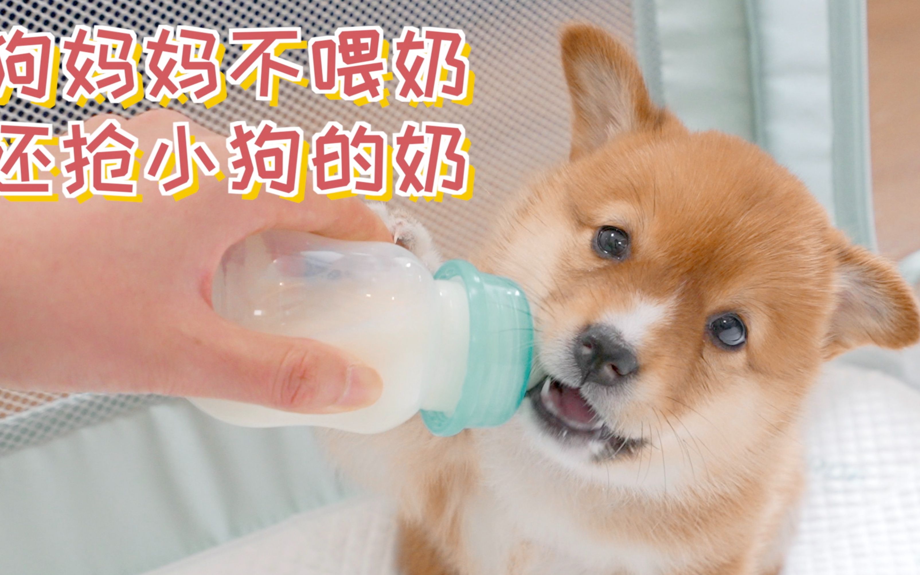 狗妈妈和小奶狗抢奶喝,还有这样的狗妈妈