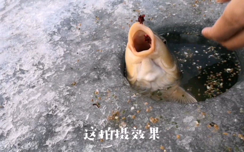 冰钓遇大鲤鱼,全程溜鱼过程,刺激死了,哇哇哇,太大了