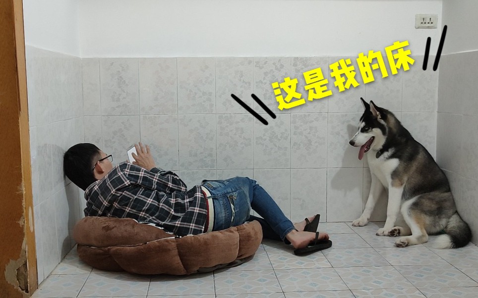 当主人睡在二哈的狗窝里,二哈会是啥反应?