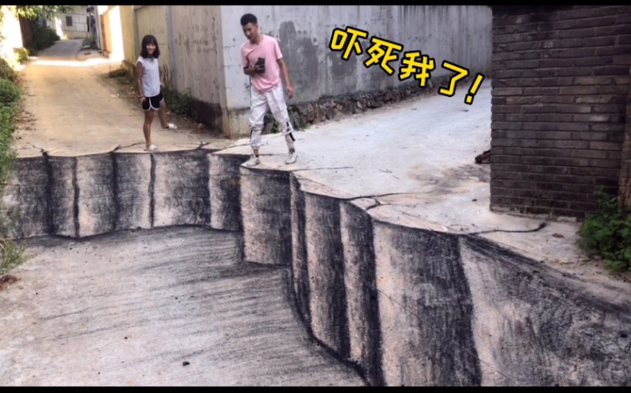 在马路上画一个坑,路人吓得腿直哆嗦!