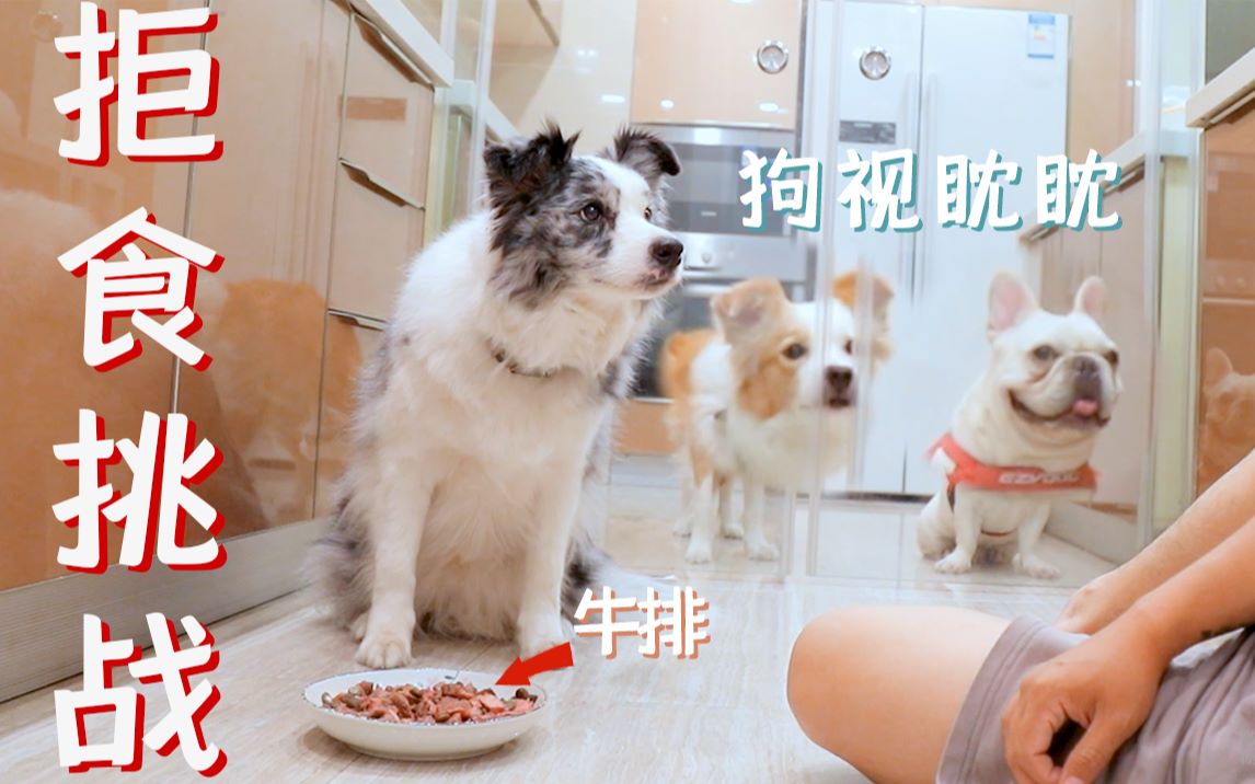 刚学会拒食主人就做了牛排拌狗粮!边牧和法斗谁会经得住诱惑!?