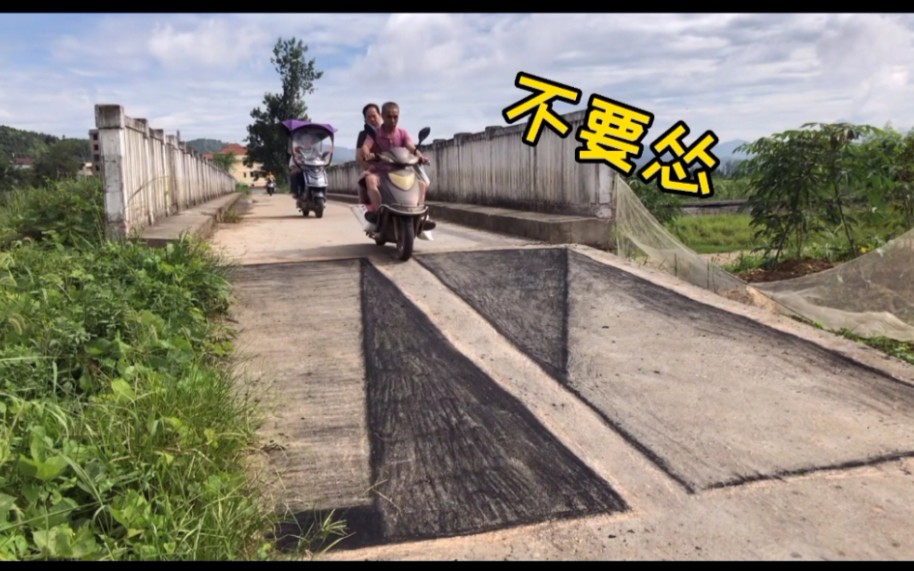 在桥上画俩个大坑,结果被美女一顿暴揍!