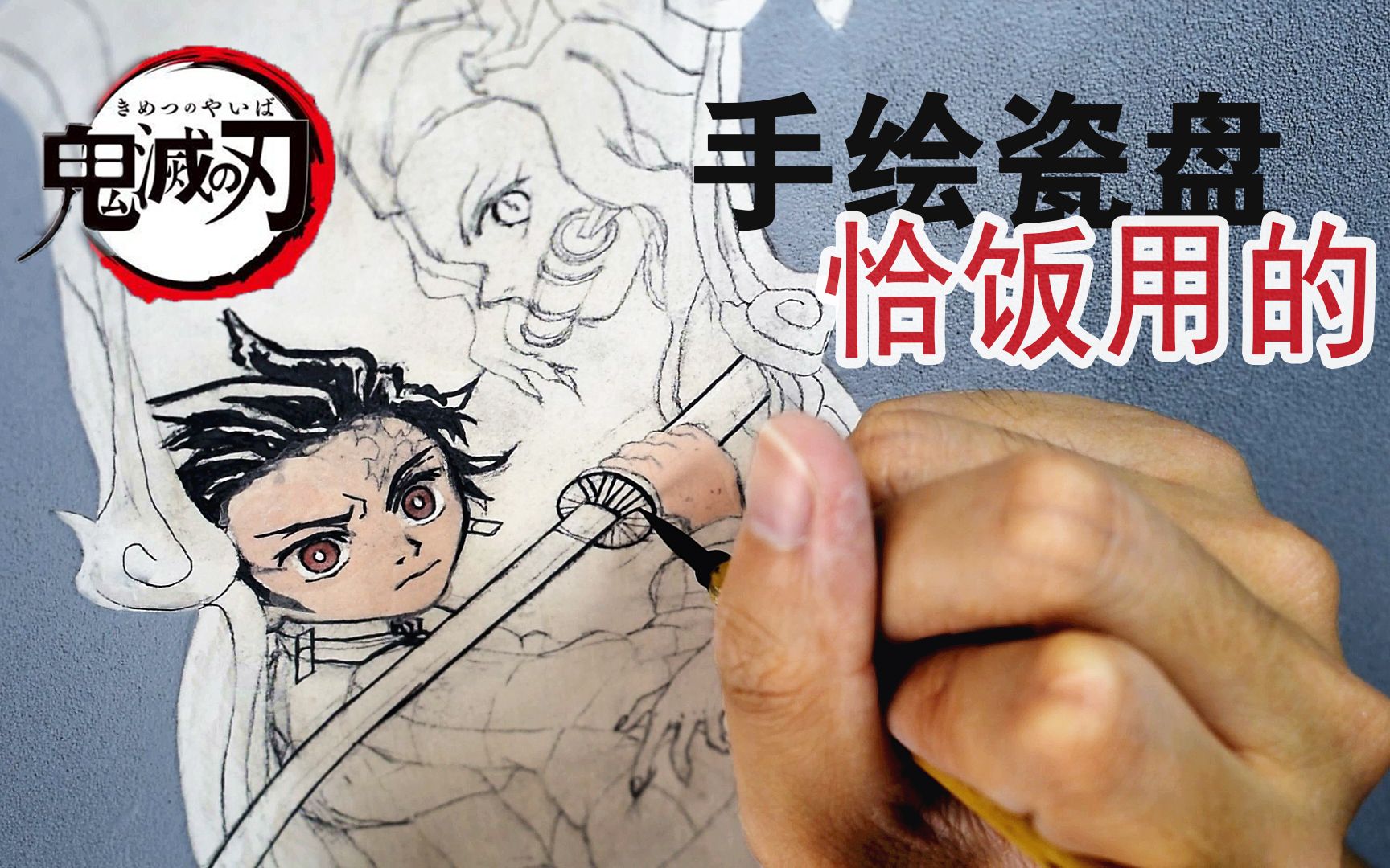 回头用这个盘子恰饭给你们看【手绘鬼灭之刃瓷盘】
