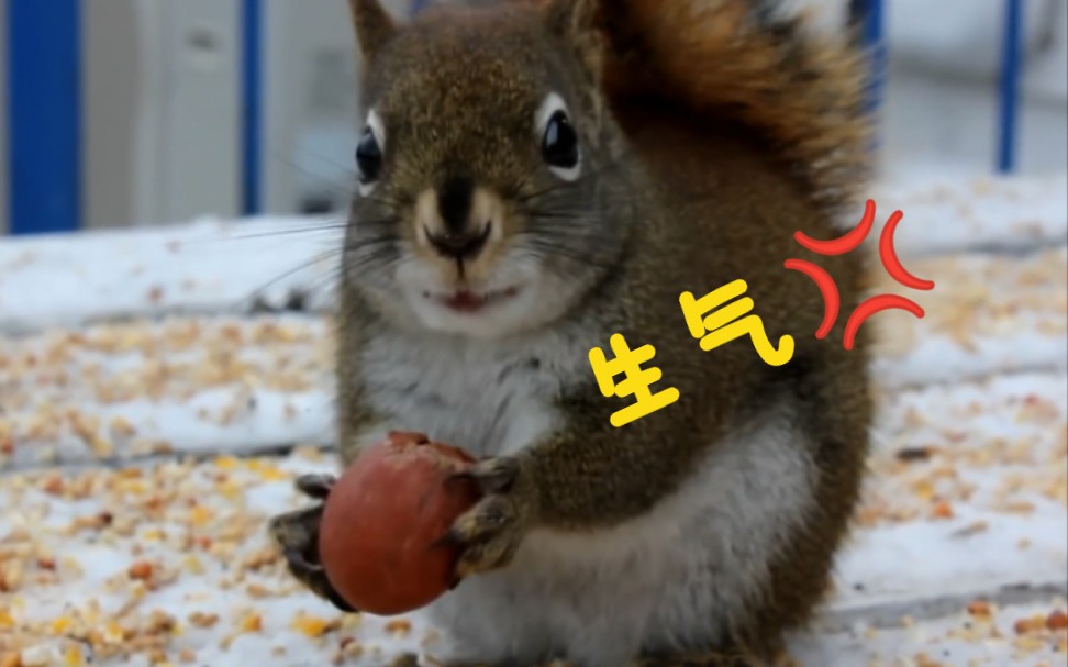 小松鼠咬好久咬不开坚果,最后气到扔掉走人