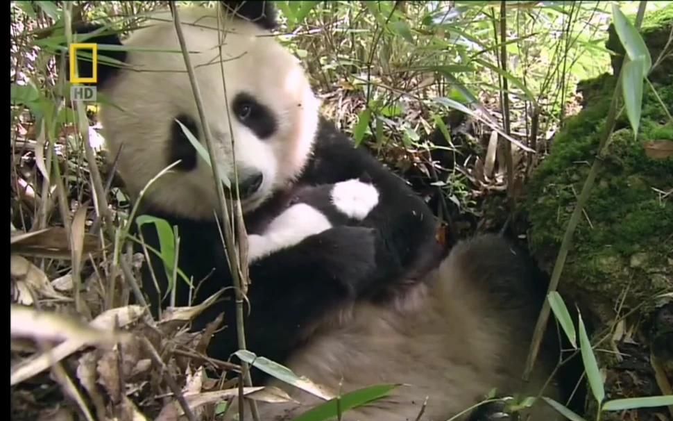 野生大熊猫:熊猫妈妈在竹林里,小心翼翼的抱着宝宝