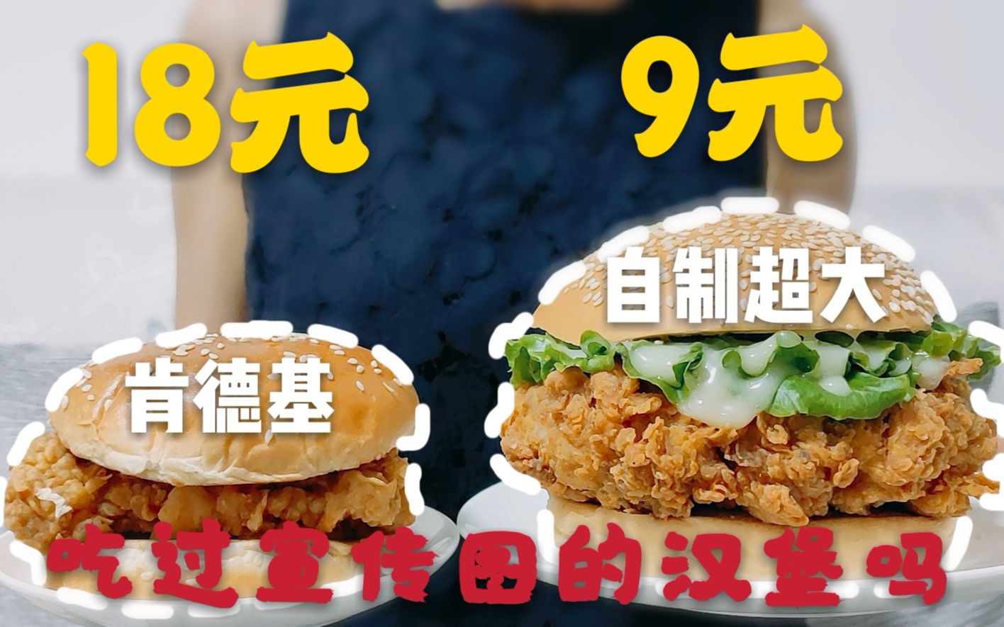 别被肯德基骗了?差别这么大!9元自制超大香辣鸡腿汉堡,还原KFC宣传图中的样子!