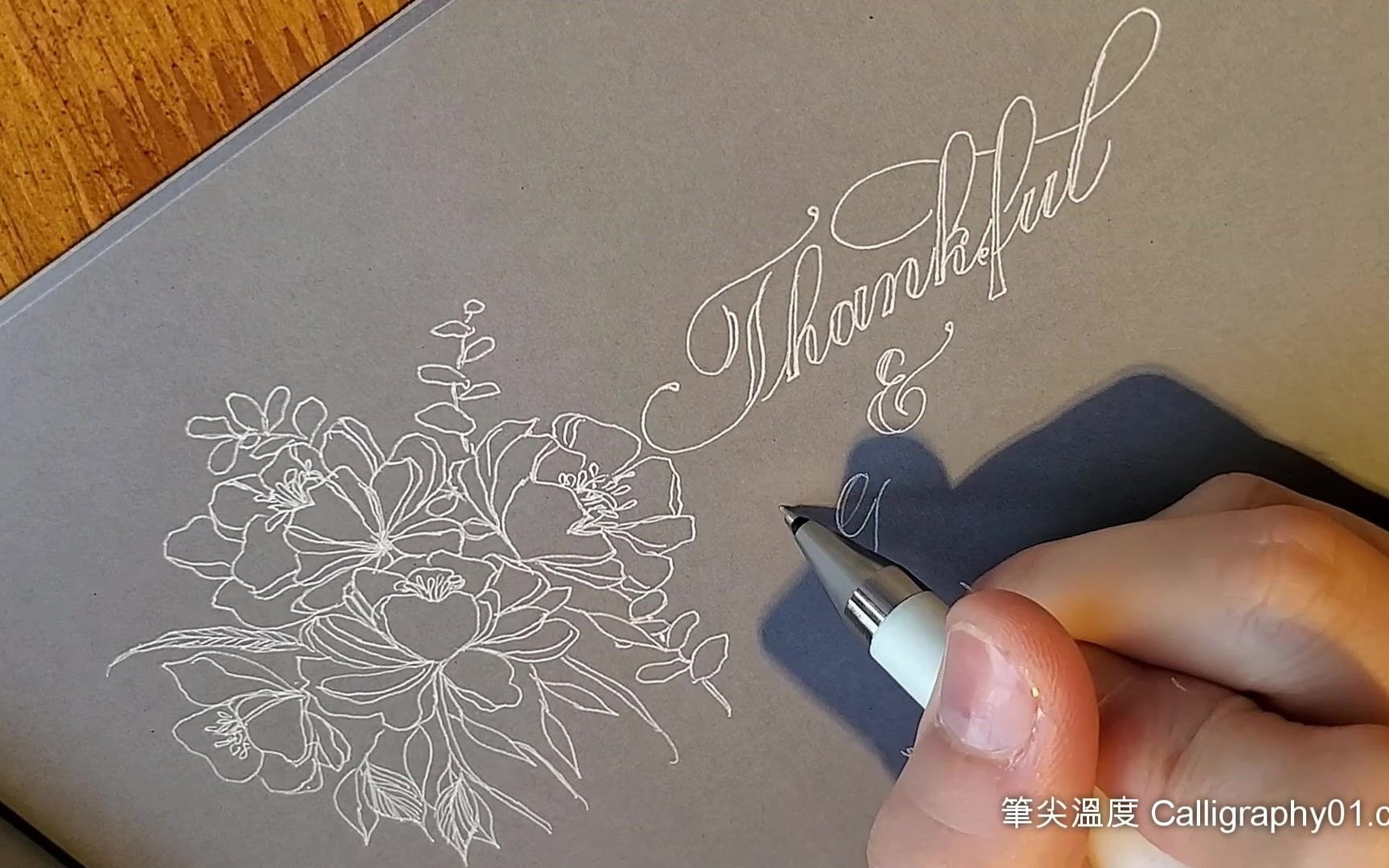 用蘸水笔画羽毛笔/offhand flourishing/英文书法