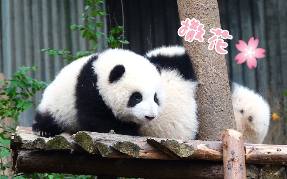 干妈不松口,你就不准走。园润拔腿助长!【大熊猫和花、园润】
