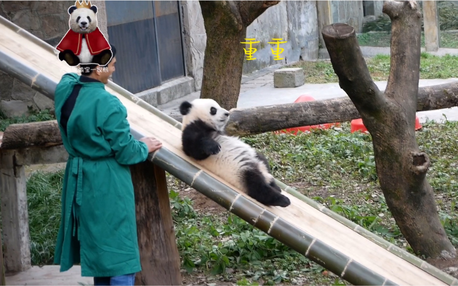 【大熊猫重重】嘻嘻!胖虫虫小盆友坐着滑就很顺啦!(^し^)