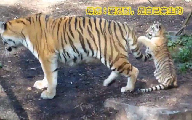 2岁东北虎和12岁母虎制作虎崽过程,体型差距好大!