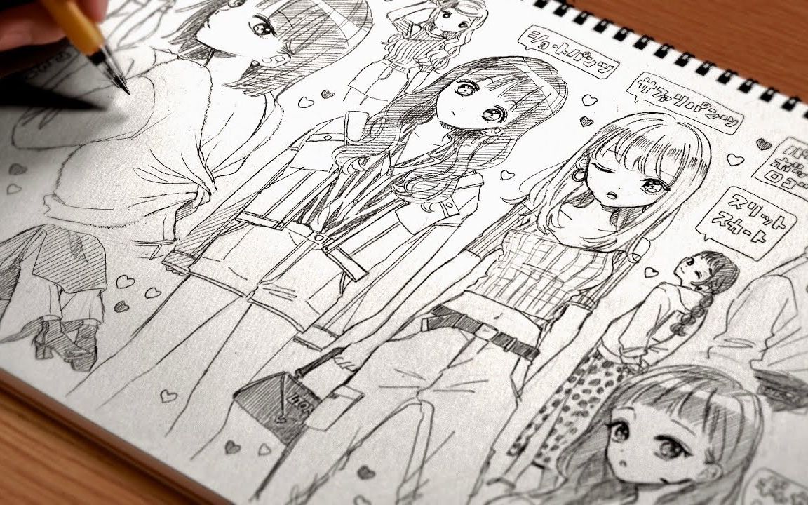 【アナログ】スケッチブック1ページに女の子描いてみた