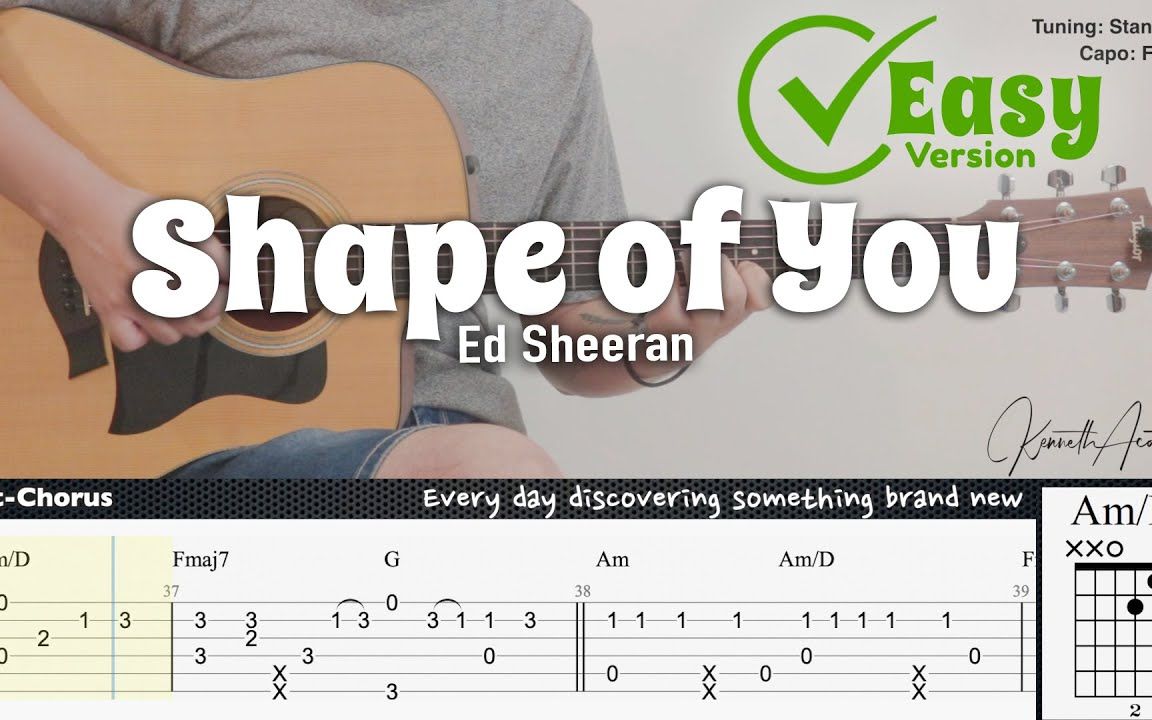 【吉他翻弹】这个谱子超级适合新手,Shape of You 简单版来啦
