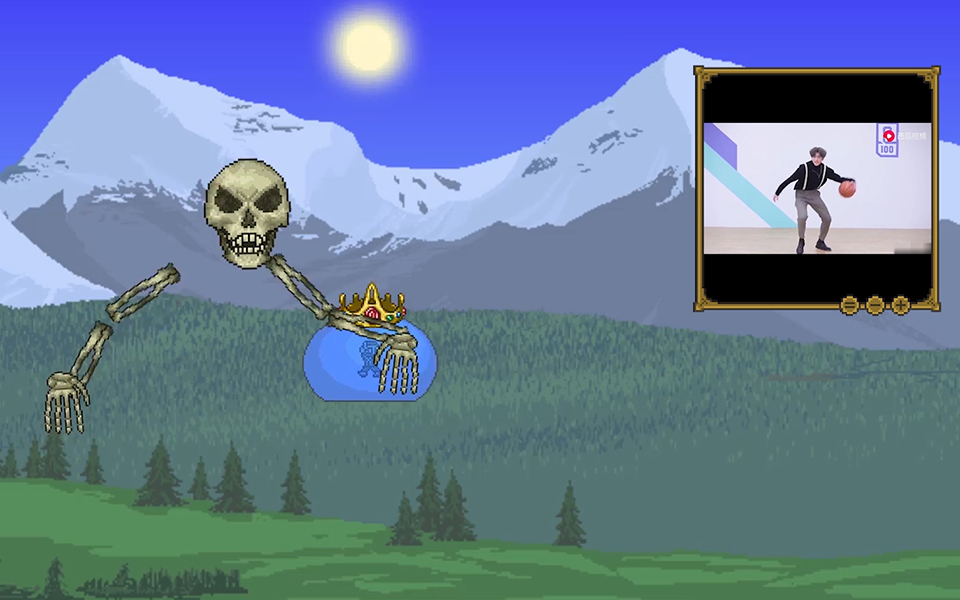 【泰拉瑞亚】机械骷髅王也疯了,大白天出来跳两只老虎爱跳舞