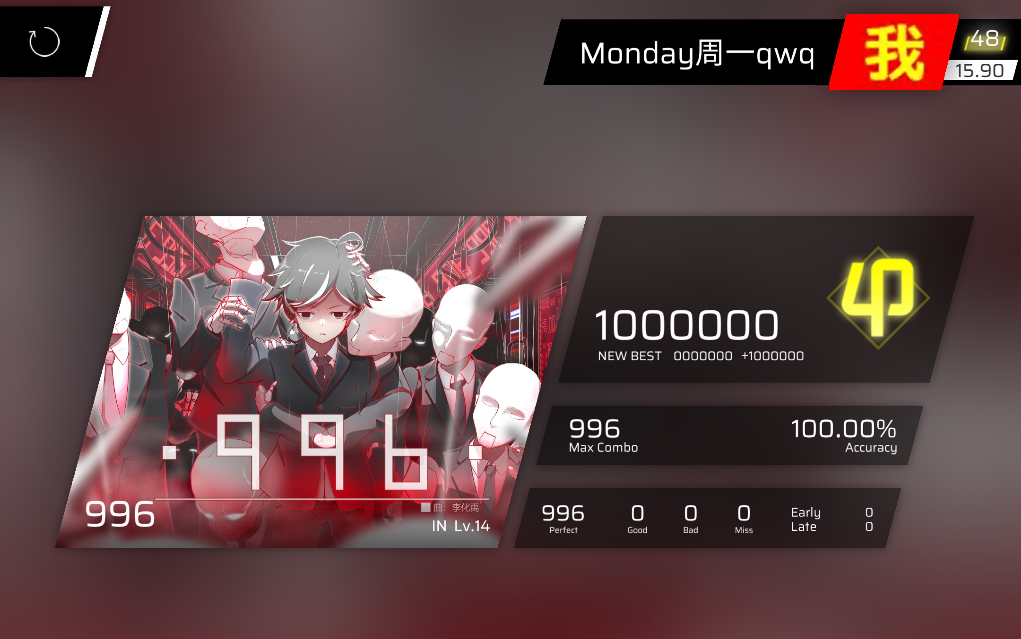 【Phigros/全站首发】996 IN Lv.14 φ评级