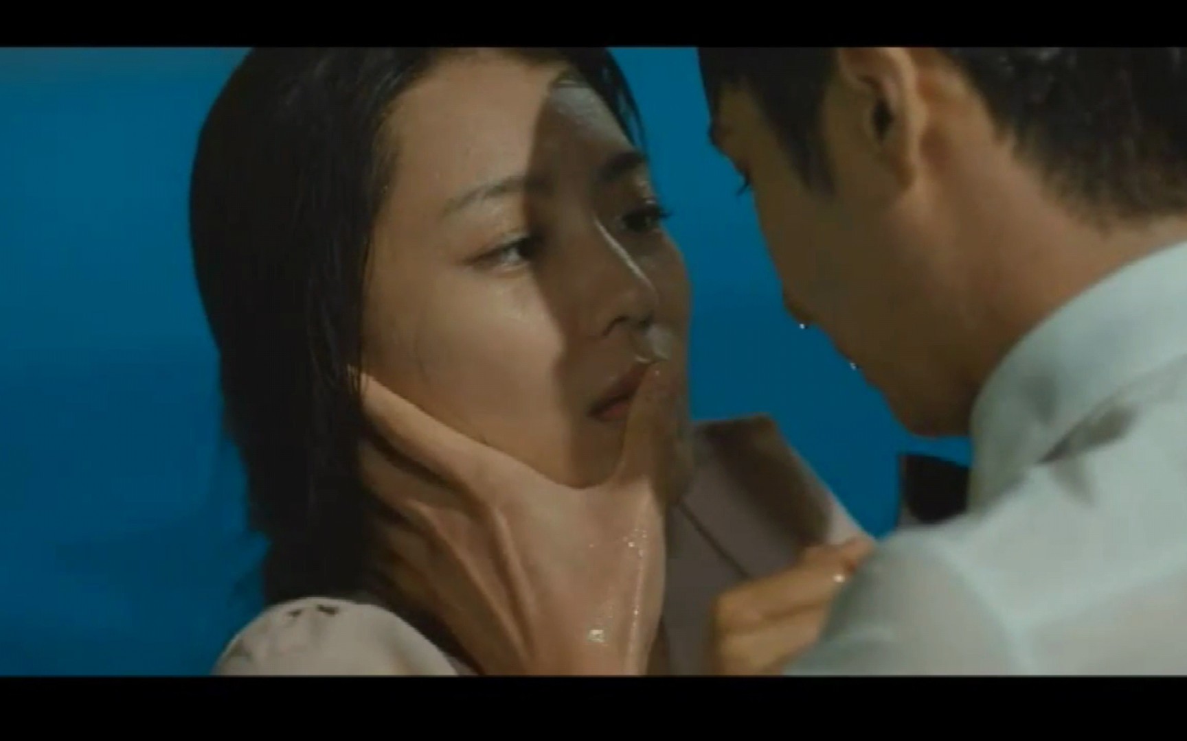 美妇在泳池嬉戏,小伙突然钻出水面一把抱住,强吻征服