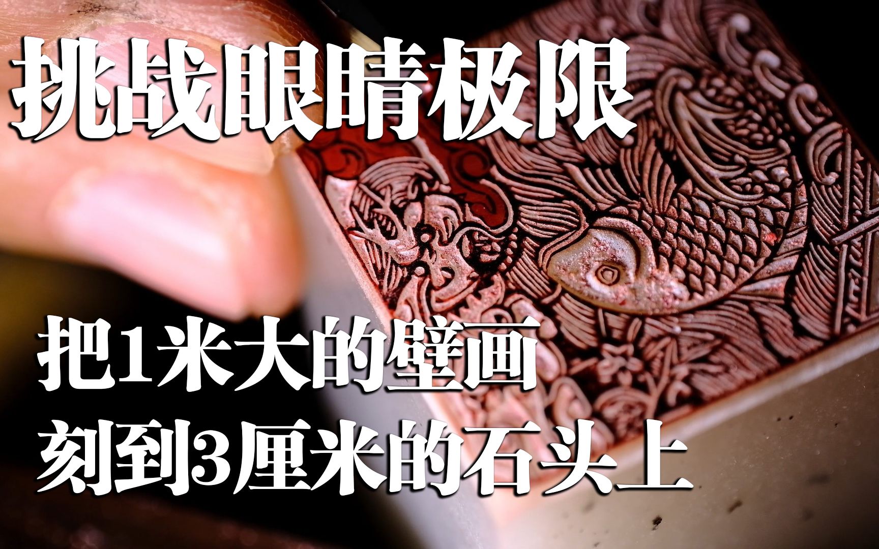 为了挑战眼睛的极限,我把一副壁画完整刻到了3厘米的石头上,鱼跃龙门