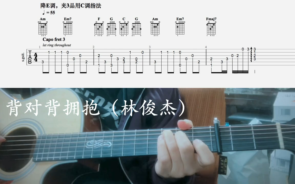 【吉他独奏慢速示范】背对背拥抱(林俊杰)