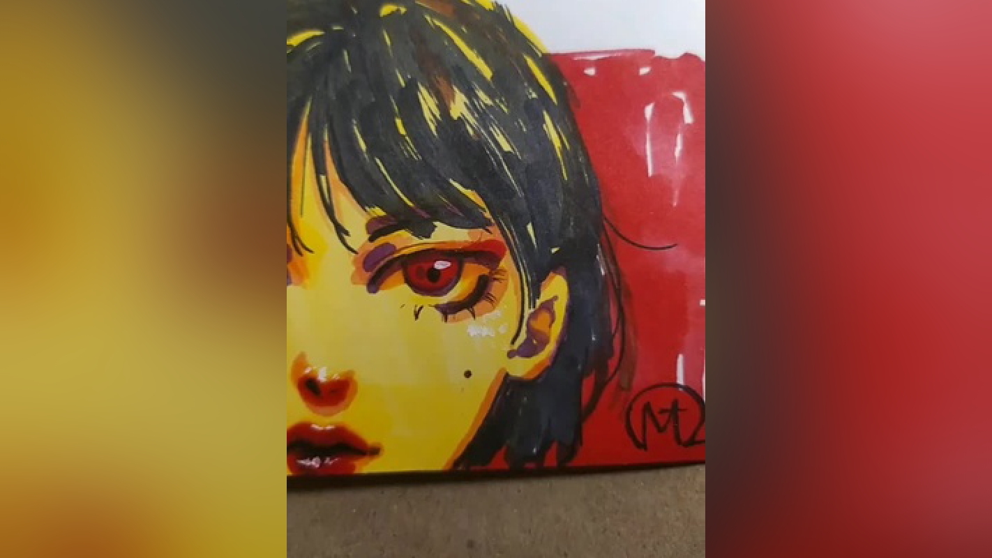 mình vẽ theo ngóc quay khác nên hơi khó vẽ, trông tranh không ổn cho lắm 😅 nhưng xem có vẻ thuận mắ