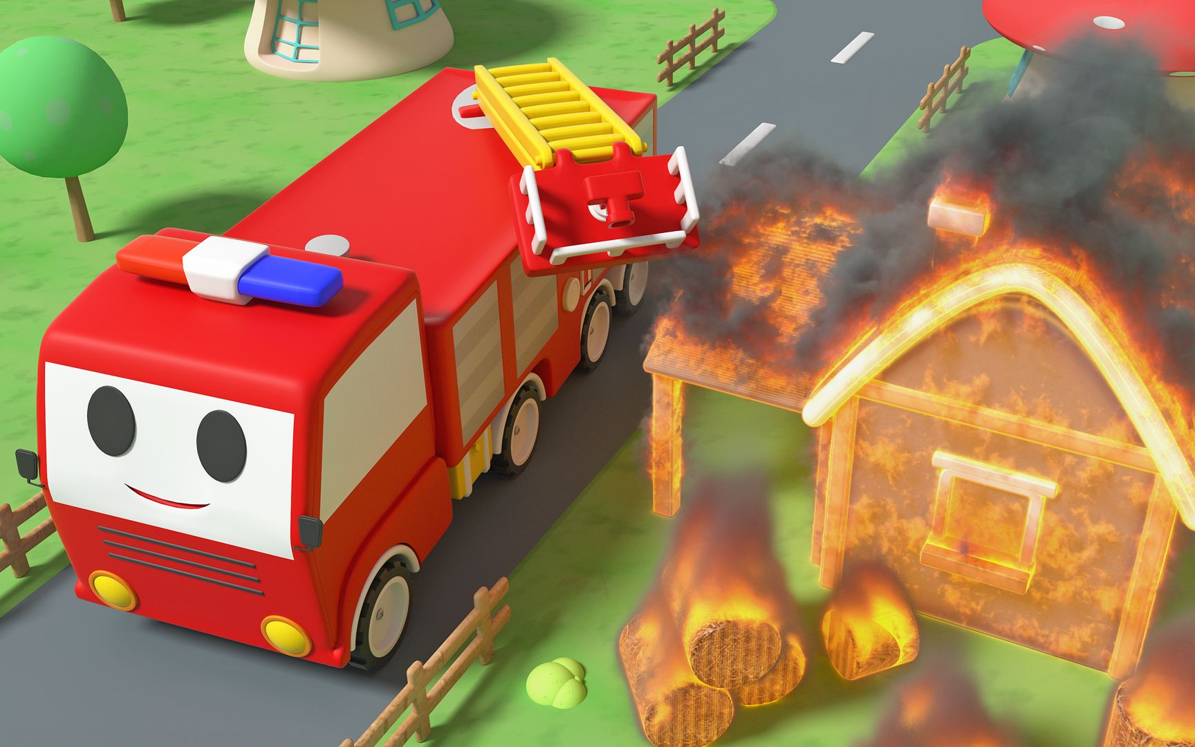 儿童动画:房屋着火啦,消防车赶紧来灭火!