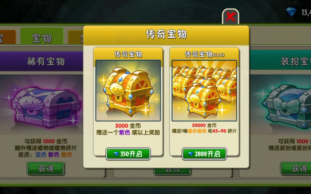 [植物大战僵尸2中文版 PVZ2]1w3钻石试水传奇宝箱,茄子树根瓷砖?我全都要!