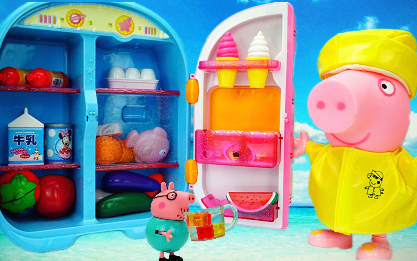 小猪佩奇把买回来的东西全都放进冰箱里啦