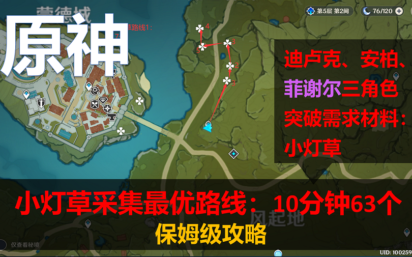 【原神】小灯草采集最优路线:10分钟63个-保姆级攻略