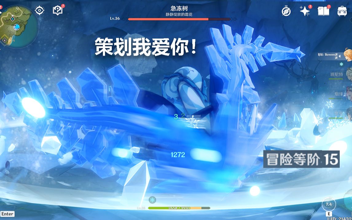 170%冰抗?神里一个大招顶冰盾秒急冻树