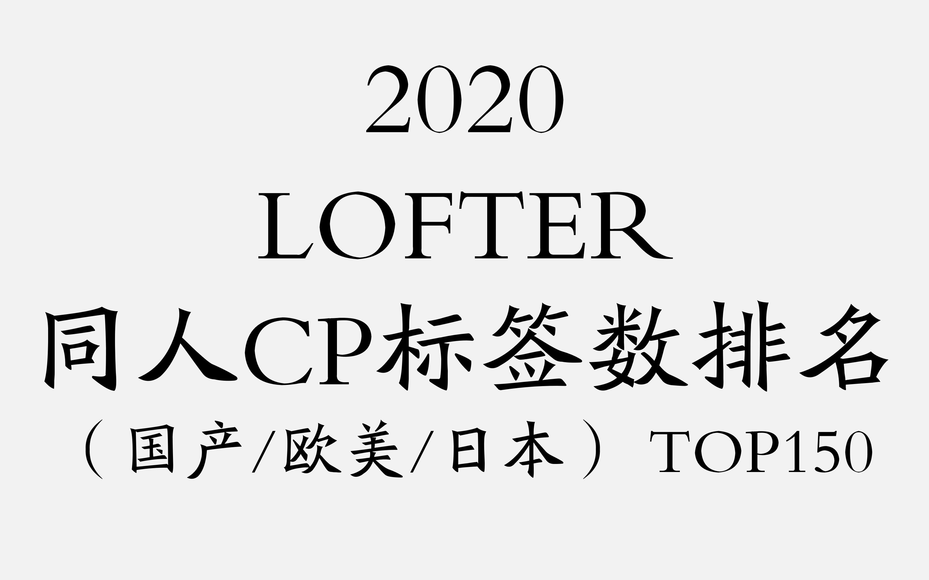 【排行向】2020 Lofter同人CP标签数排名(TOP150)