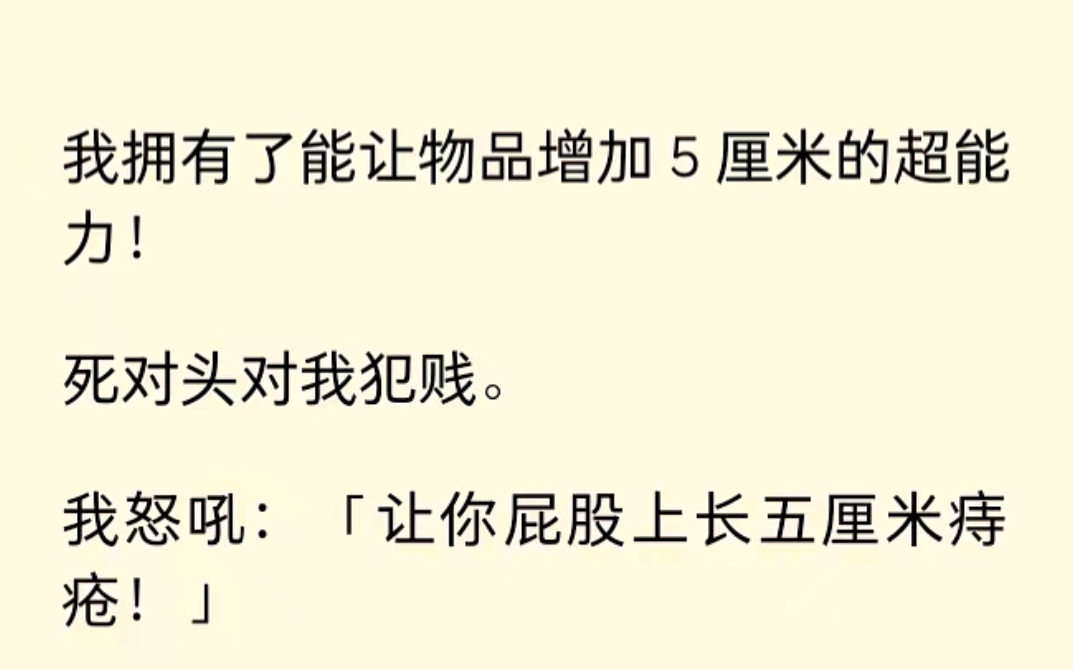 我有了能让物品增长五厘米的能力,死对头犯贱,我让他长了五厘米痔疮。哦豁...玩大了...