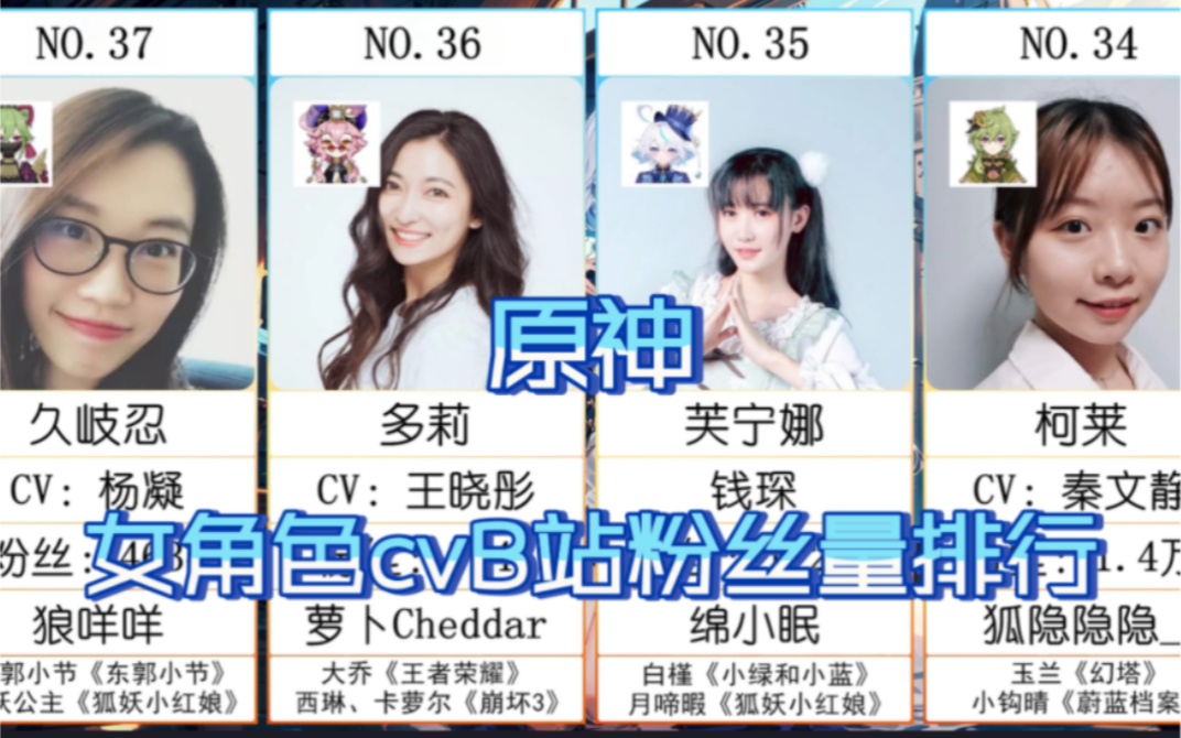 【原神】女角色配音B站粉丝量排行,cv姐姐都好漂亮!