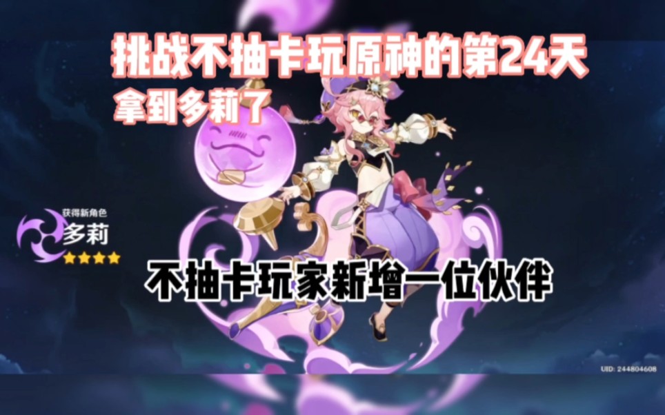 【原神】挑战不抽卡玩原神的第24天,拿到多莉了!不抽卡玩家新增一位伙伴!