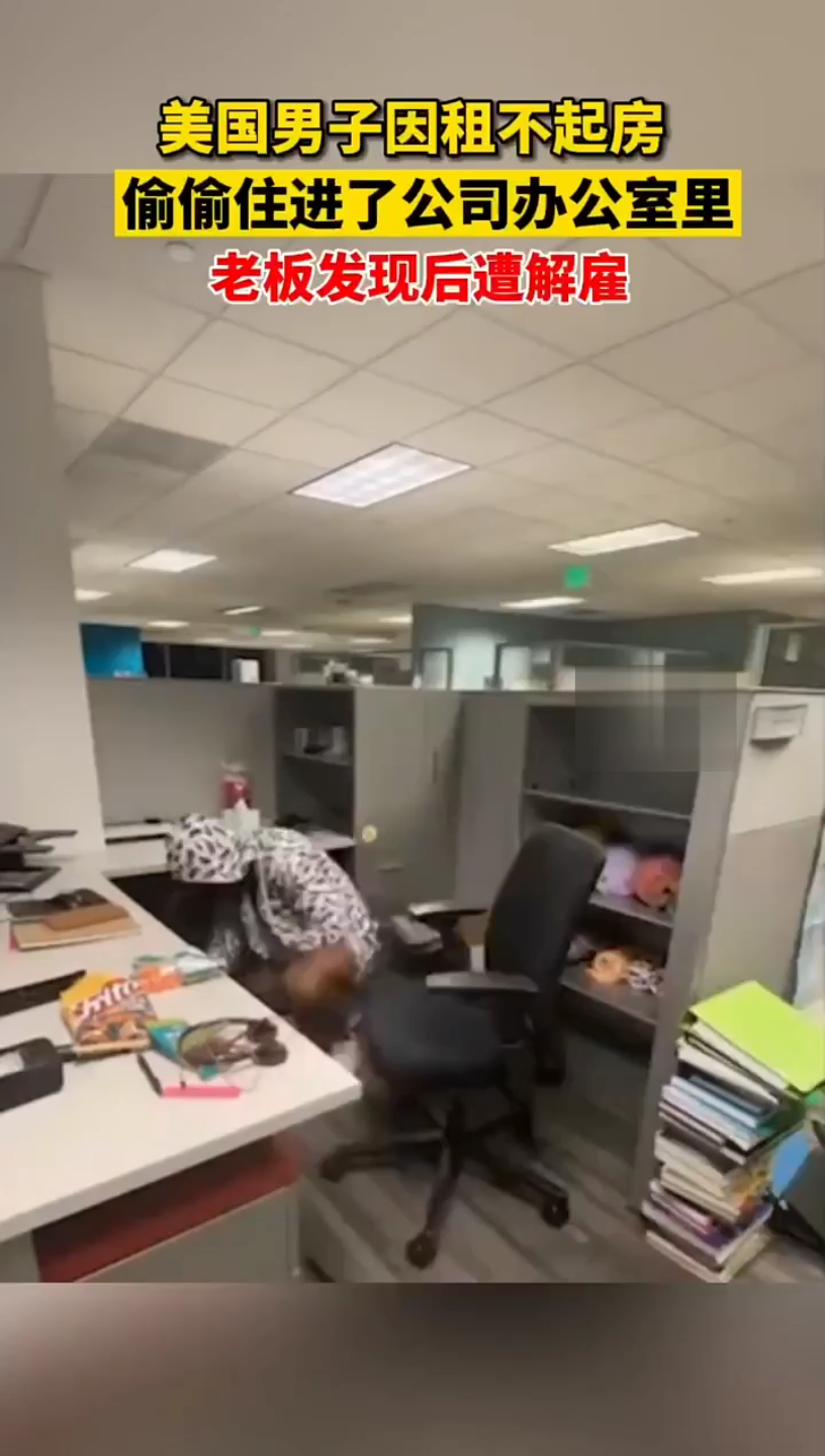 美国西雅图一名男子因租不起房住在了办公室。在仅仅住了4天后,他就被发现…