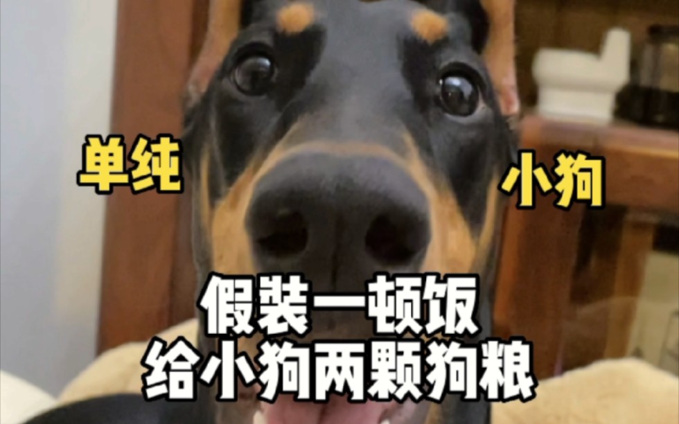 假装一顿饭给小狗两颗狗粮…给孩子急得要说话了