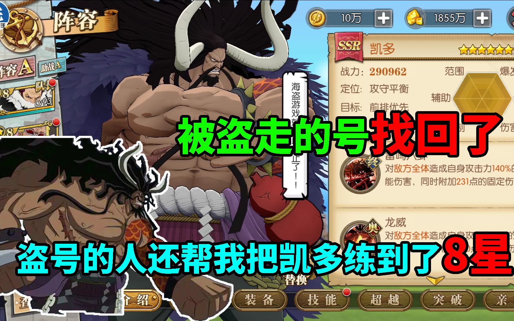 航海王燃烧意志:被盗走的号找回了,盗号的人还帮我把凯多练到了8星