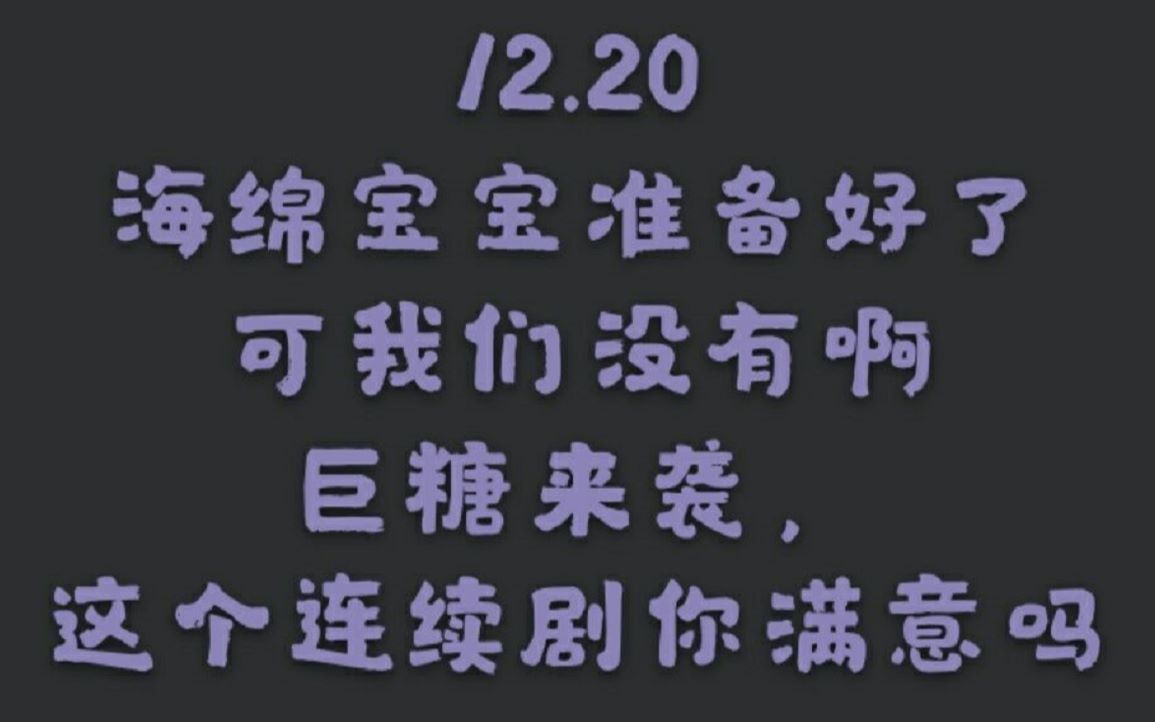 【博君一肖】12.20巨糖 | 这什么神仙宠溺的语气啊!!海绵宝宝连续剧之我深爱着一颗寂寞的海星 | 巨糖砸晕人系列 | 海绵宝宝准备好了,可我们没有啊