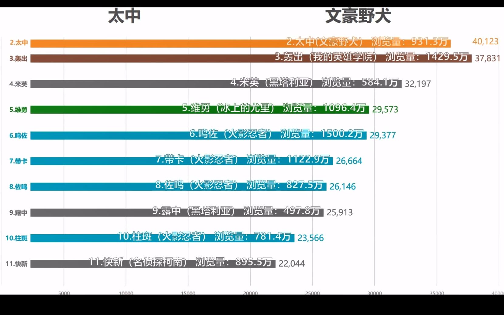 LOFTER上最火的日漫CP排名(标签参与数TOP150)【数据可视化】