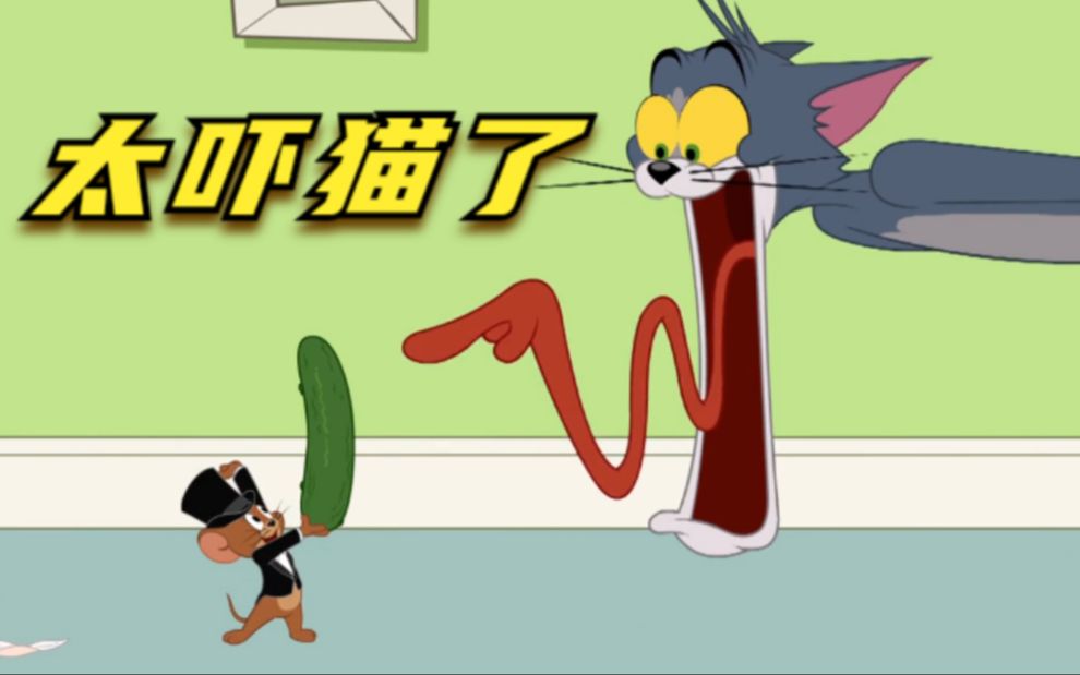 杰瑞看视频获取新知识,恐怖的黄瓜太吓猫了