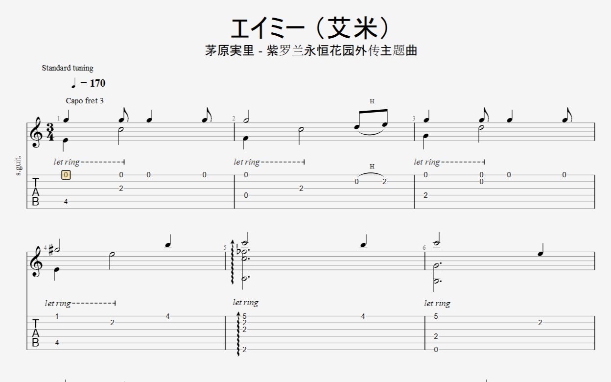 【吉他】紫罗兰永恒花园外传ED《エイミー》(艾米) Clozzz吉他指弹谱【京紫】