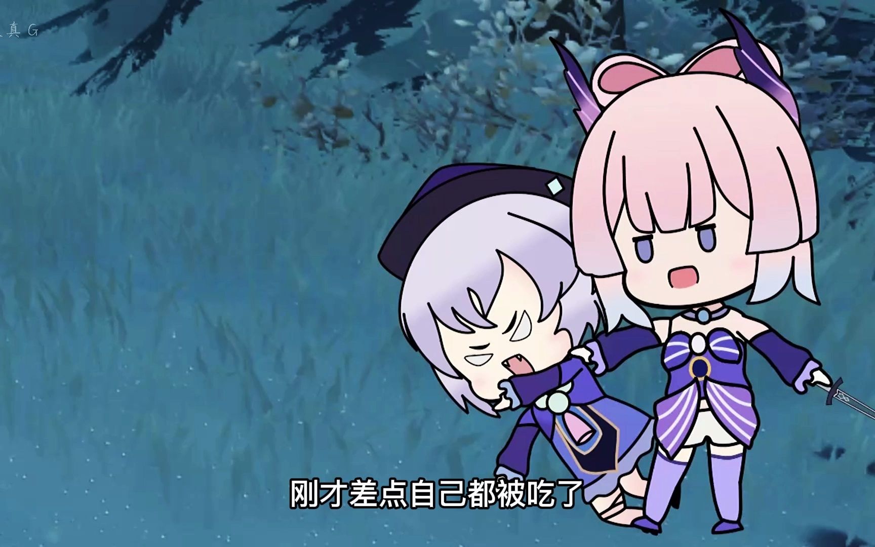 【原神短片】钟离,香菱,胡桃背着荧开小灶