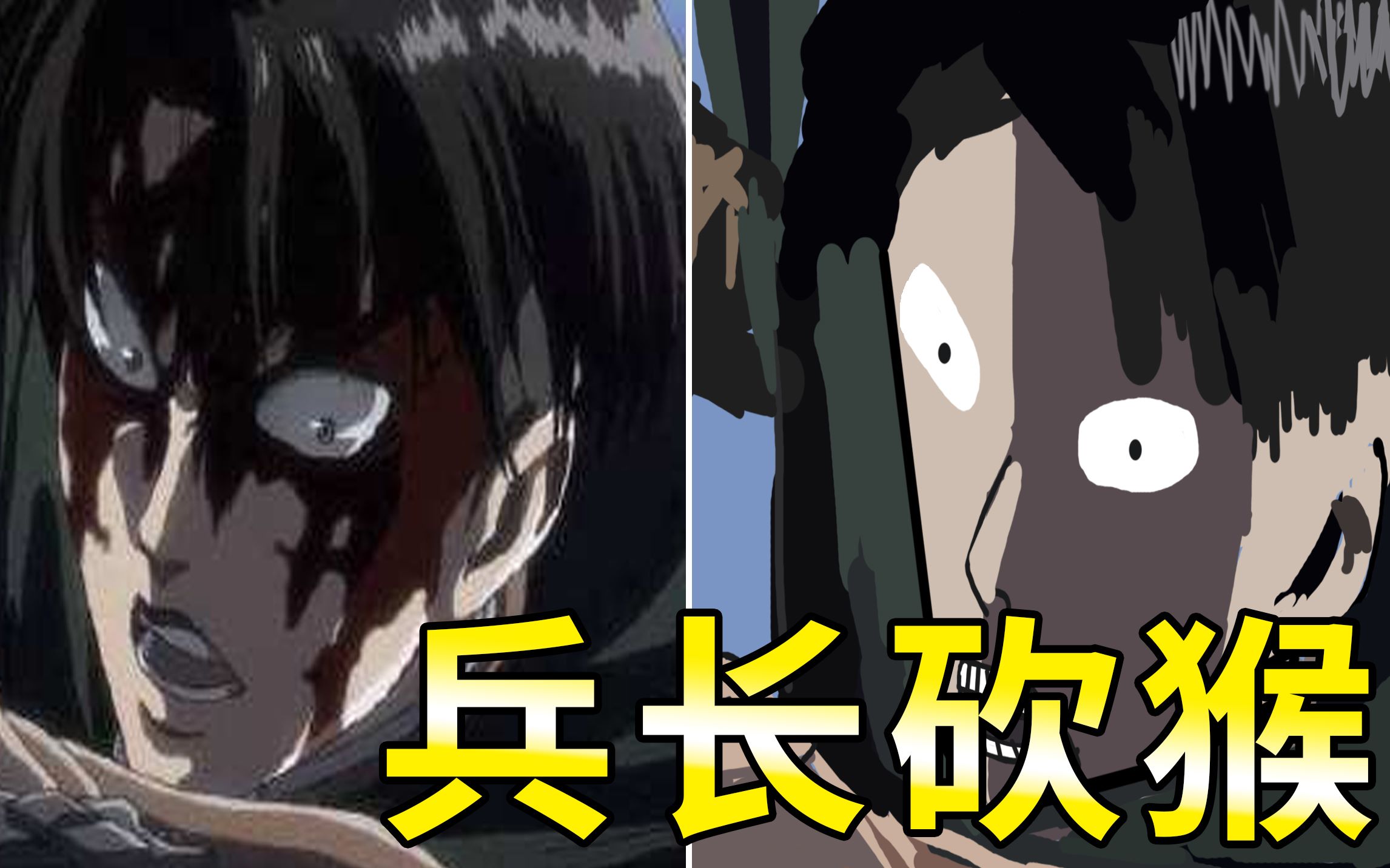 【前方高燃】进击的巨人 鼠绘还原兵长砍猴 兵长VS兽之巨人 爆笑恶搞