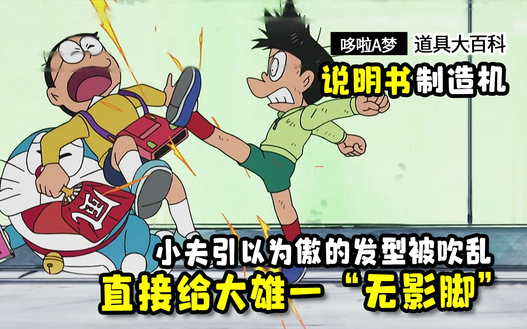 哆啦A梦:发型被熊孩子弄乱,小夫直接给大雄一“无影脚”