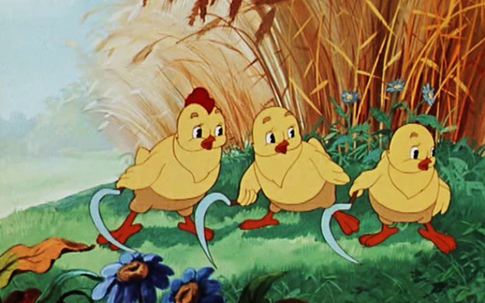 1954年苏联动画实在惊艳!三只小鸡辛苦耕种,懒惰猫和狗彻底悲剧
