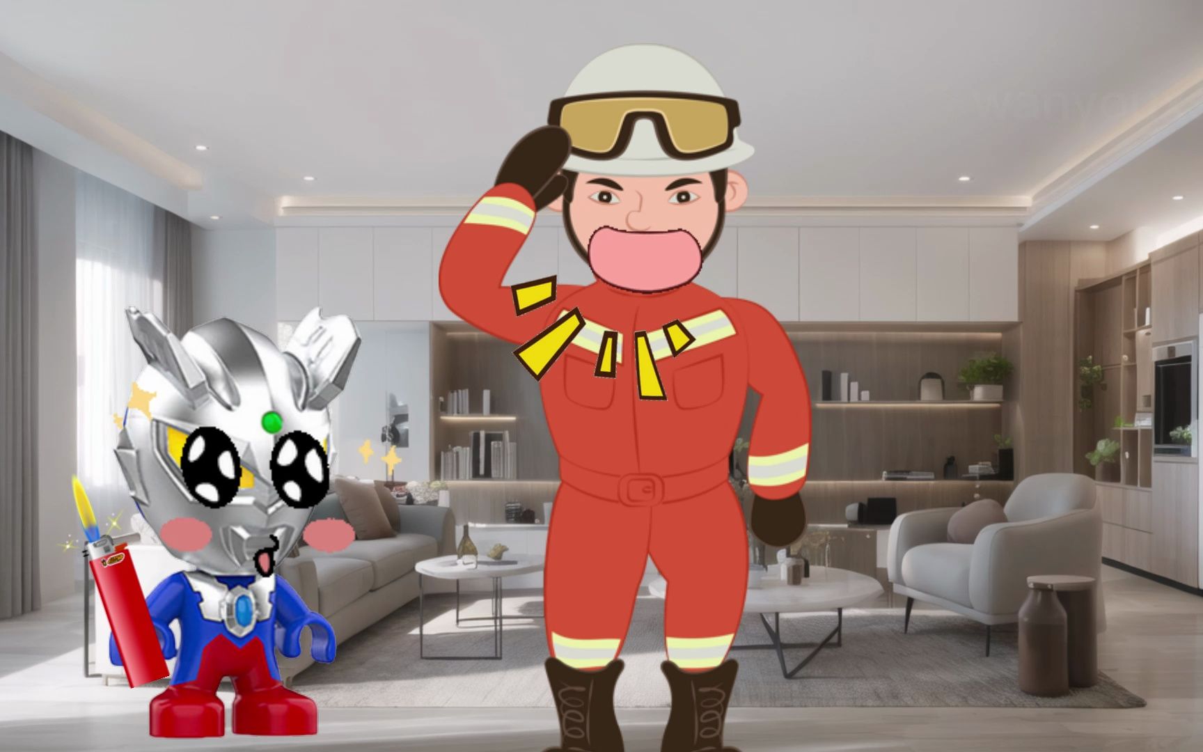 小奥特曼乱扔鞭炮起火了,幸好有消防员叔叔来灭火