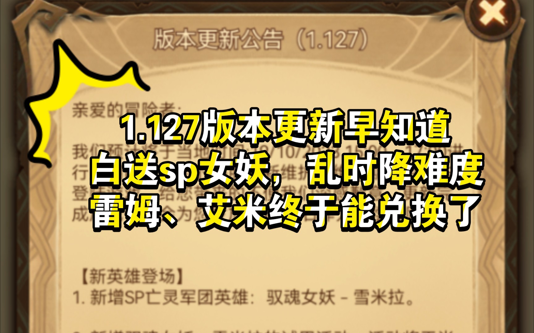《剑与远征》1.127版本更新早知道,白送sp女妖,乱时降难度,雷姆、艾米终于能兑换了